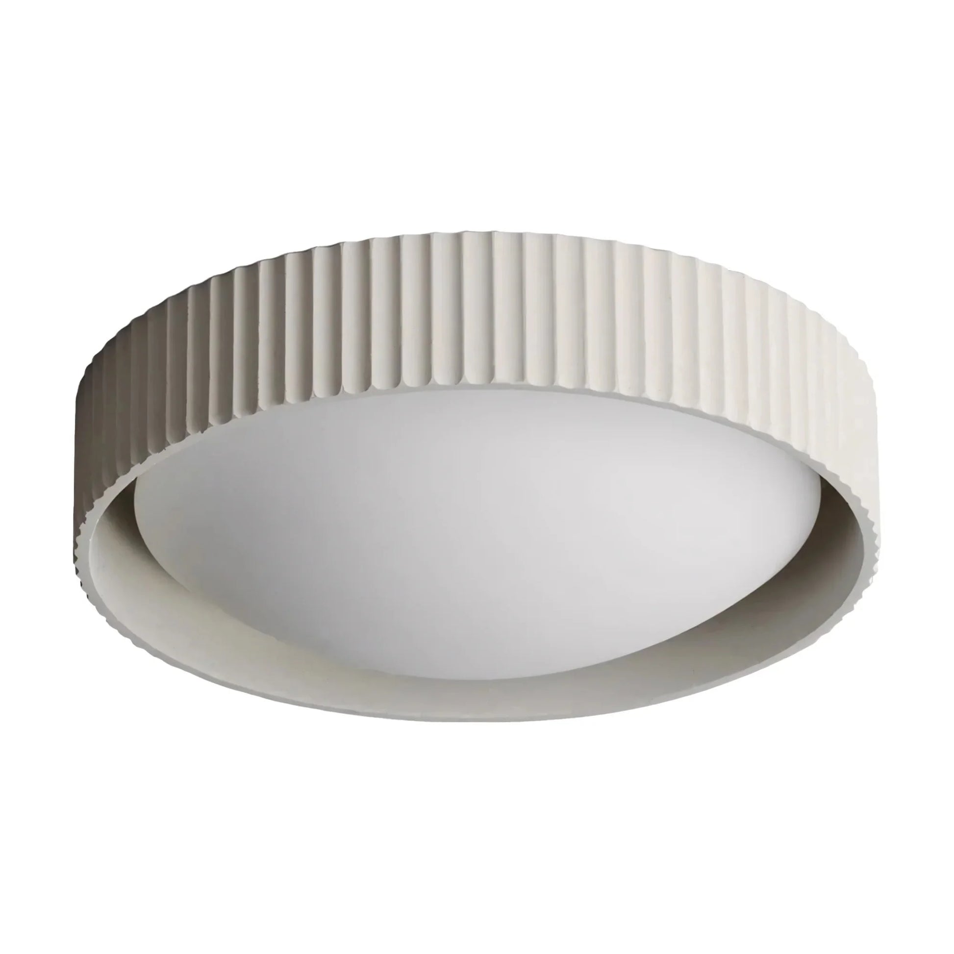 With scalloped cast concrete pans and curved opal diffusers over integrated LEDs, this fixture blends classic form with raw texture—perfect for living rooms, bedrooms, and kitchens.