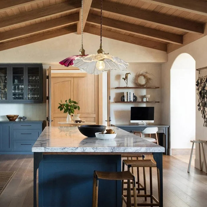 The Lotus retro glass pendant light, featuring a transparent shade, effortlessly introduces a touch of nostalgia to any room. The handmade glass lampshades contribute to an overall romantic ambiance. Choosing these glass pendant lights would be an excellent decision.