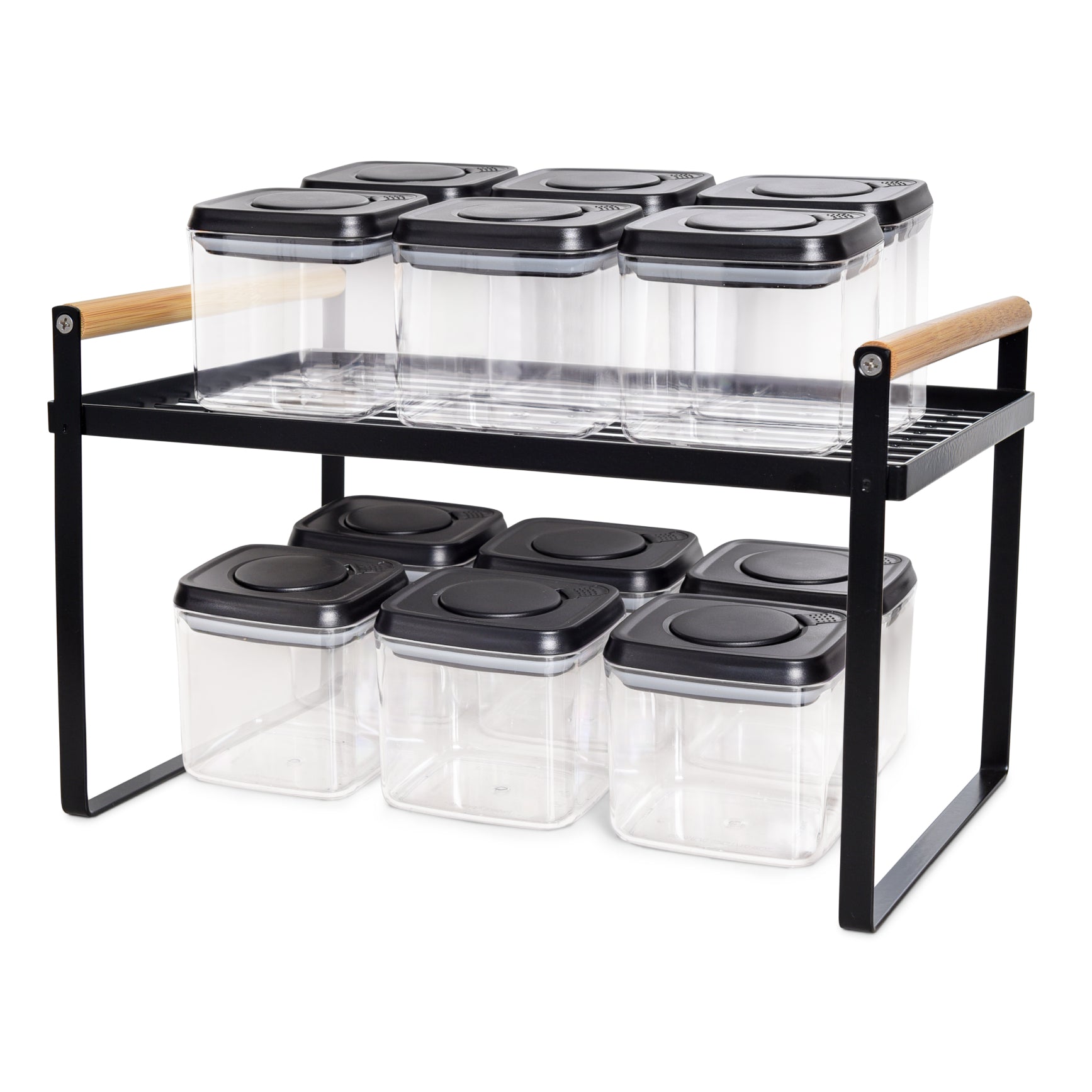 Organise your spices in style with our Minimalist Spice Storage Set. This set includes containers in a sleek black colour along with a metal storage rack. Keep your kitchen looking clean and modern while having all your spices easily accessible. Say goodbye to cluttered counters and hello to effortless cooking!