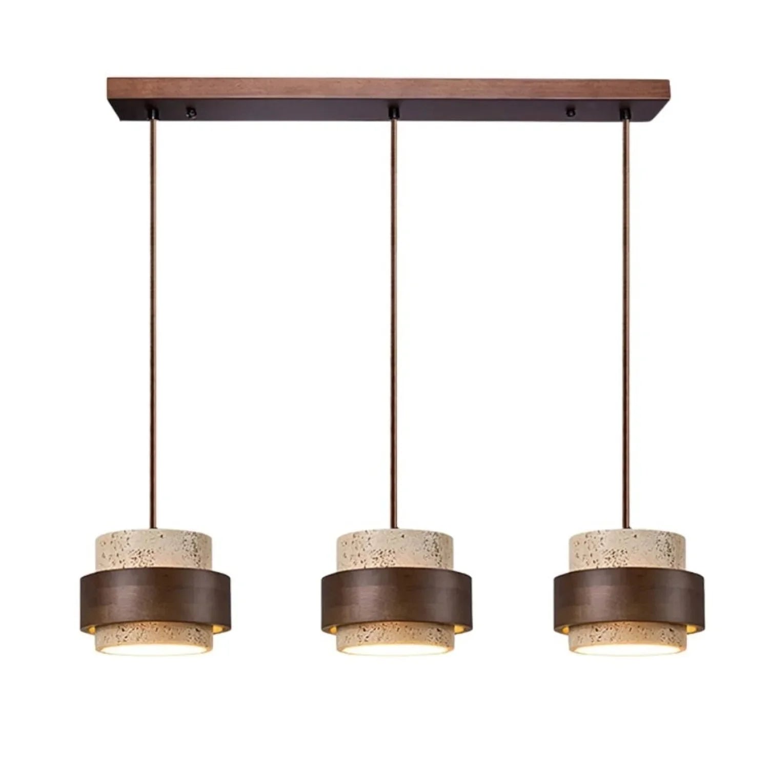 The Orvina Japandi Travertine Pendant Lamp seamlessly blends modern minimalism with natural elegance. Featuring smooth travertine paired with walnut-toned accents, it creates a striking visual contrast.
