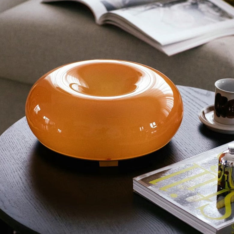 in design, this donut-shaped wall lamp combines modern aesthetics with a lively orange hue to warm and color any space.